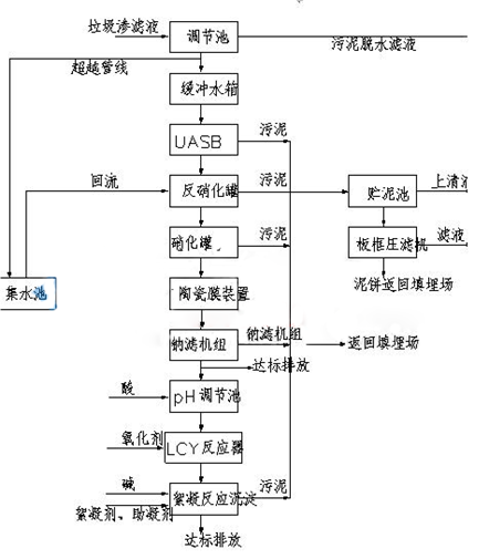 垃圾滲濾液水處理技術工藝流程圖