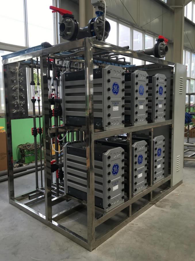 我司為河南義騰新能源科技有限公司提供1套30m3/h的EDI純水處理設備。該技術具有以下特點:可連續生產超純水,產水水質穩定;不需要酸堿再生,節約酸堿消耗以及相應的儲運和再生設施;避免了危險化學品對操作人員的傷害;無再生污水產生,工藝潔凈等。