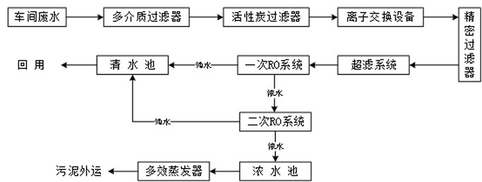 電鍍工廠排出的廢水和廢液中含有大量金屬離子如:鉻、鎬、鎳,含氰,含酸,含堿,一般常含有有機添加劑。金屬離子有的以簡單的陽離子形式存在,有的則以酸根陰離于形式存在,有的以復雜的絡合離子存在。電鍍廢水處理常用中和沉淀法、離子交換法、中和混凝沉淀法、氧化法、還原法、鋇鹽法、鐵氧體法等化學方法。化學法設備簡單,投資少,應用較廣,但要實現中水回用必須做深度處理,如超濾、反滲透等工藝。而反滲透的濃水則含有基本上高鹽廢水,如果需要完全水處理只能通過蒸發結晶的方式進行深度濃縮,以至于成為半固體狀物質進行外運。
