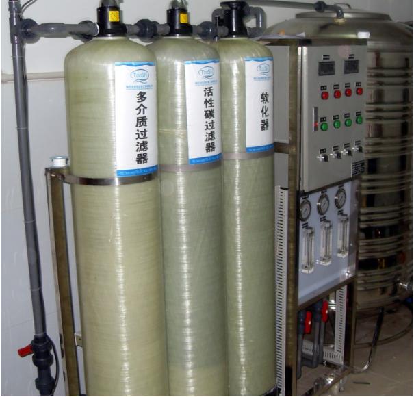 2、自來水加壓泵→多介質過濾器→活性炭過濾器→陽離子軟水器→保安過濾器→中空超濾膜/反滲透膜/納濾膜→臭氧發生器→不銹鋼儲水罐→變頻恒壓供水泵→供水管道——符合建設部CJ94-1999 <<飲用凈水水質標準>> 。