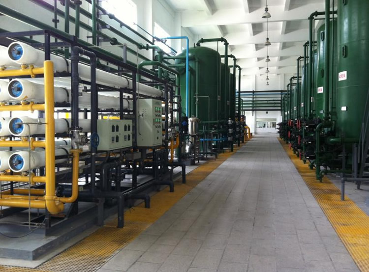 原水→原水加壓泵→多介質(zhì)過濾器→活性炭過濾器→軟水器→精密過濾器→一級反滲透機→中間水箱→中間水泵→EDI系統(tǒng)→微孔過濾器→用水點。