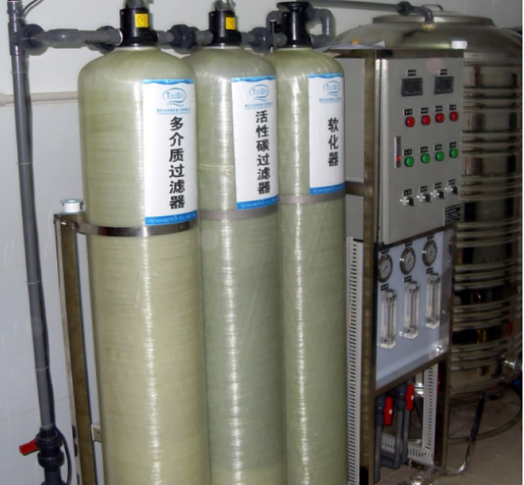 原水→水泵→石英砂過濾器→活性炭過濾器→軟水器→RO反滲透膜過濾→臭氧消毒→紫外線消毒→直接飲用的無菌水