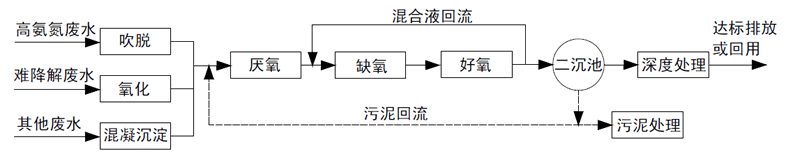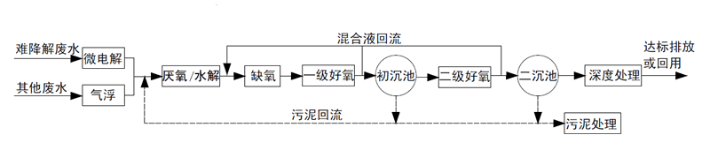 1.預處理+二級組合生化+深度處理