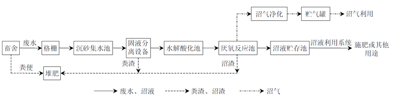 以能源利用與綜合利用為主要目的,適用于當地有較大的能源需求,沼氣能完全利用,同時周邊有足夠土地消納沼液、沼渣,并有一倍以上的土地輪作面積,使整個養殖區域的畜禽排泄物在小區域范圍內全部達到循環利用的情況