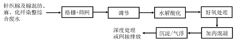 (2)針織棉及棉混紡染整、麻染整以及化纖染整的綜合廢水水質情況類似,其常規處理宜采用生化+物化組合工藝