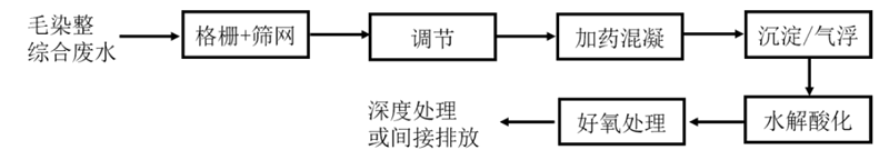 (3)毛染整綜合廢水常規處理宜采用物化+生化的組合工藝