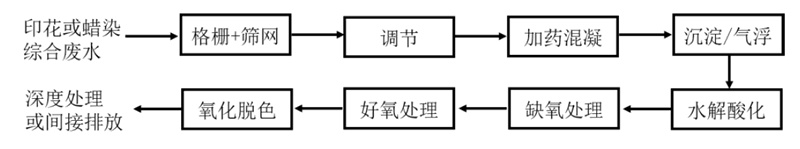 (5)印花或蠟染綜合廢水常規處理宜采用物化+生物脫氮組合工藝