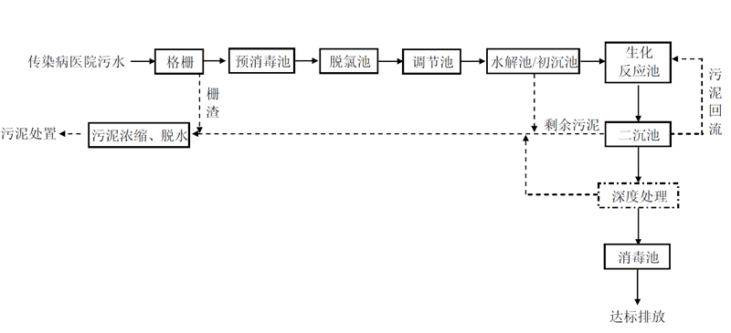 2.2.2.傳染病醫(yī)院污水,一般采用預消毒+二級處理+(深度處理)+消毒工藝